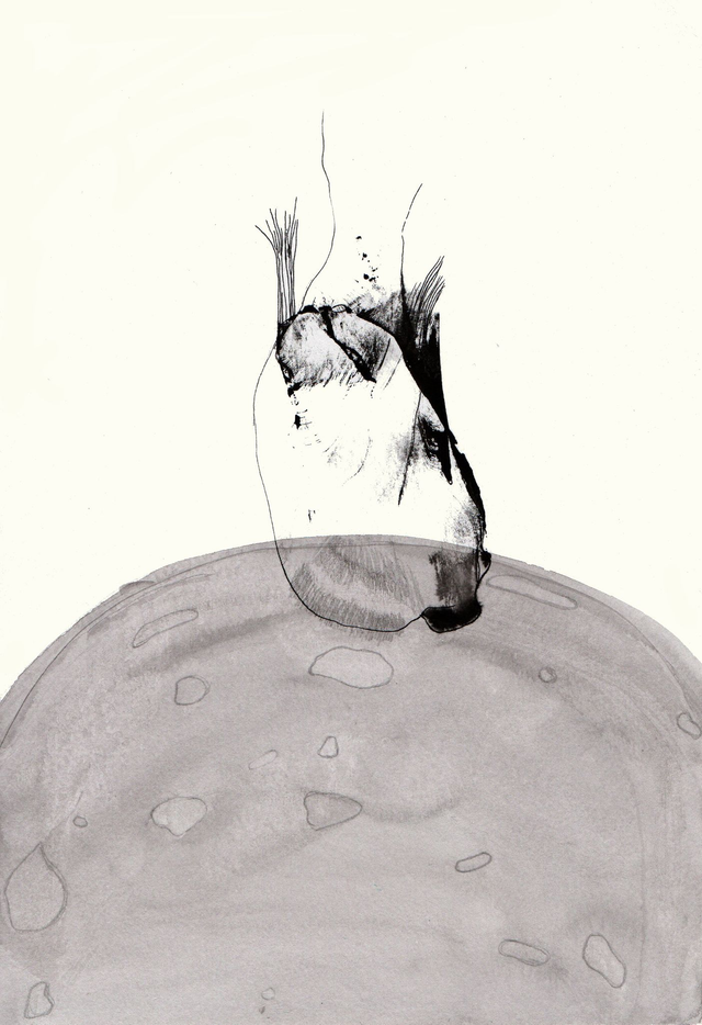 Encre de chine originale des « Comptines du week-end » . Titre : Alunir à la russe sur un mont Vénus