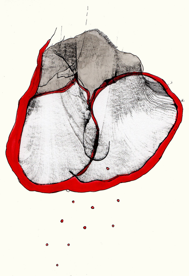 Encre de chine originale des « Comptines du week-end » . Titre : j'ai la césure au cœur