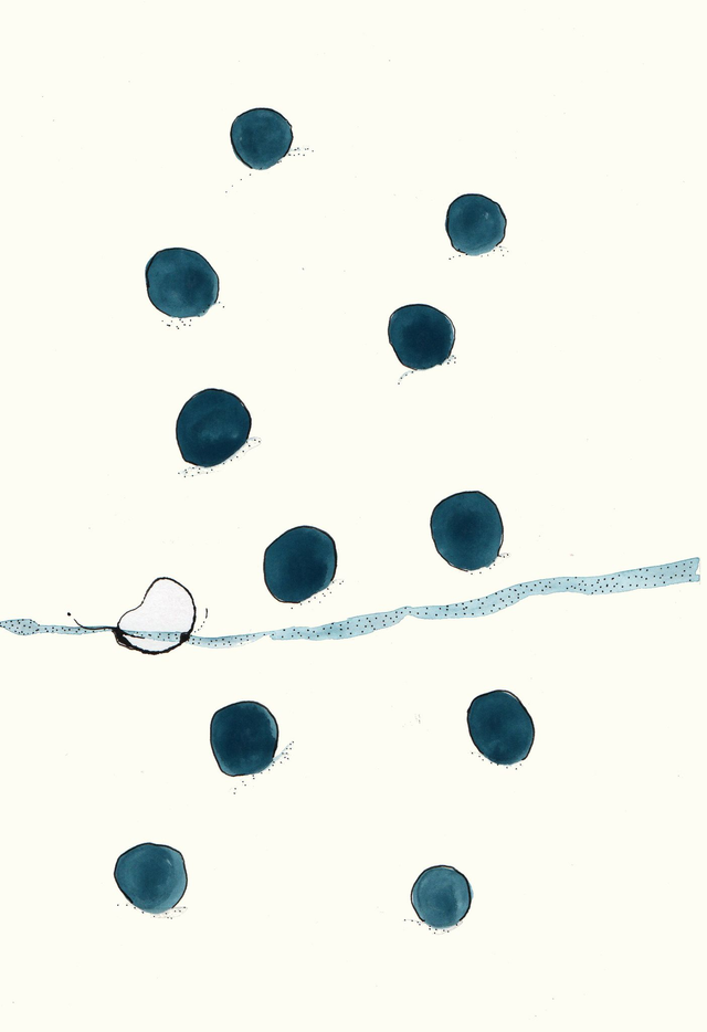 Encre originale et unique pour le livre « Les comptines du week-end ». Titre : Ecrire c'est surfer sur le fil d'un nuage