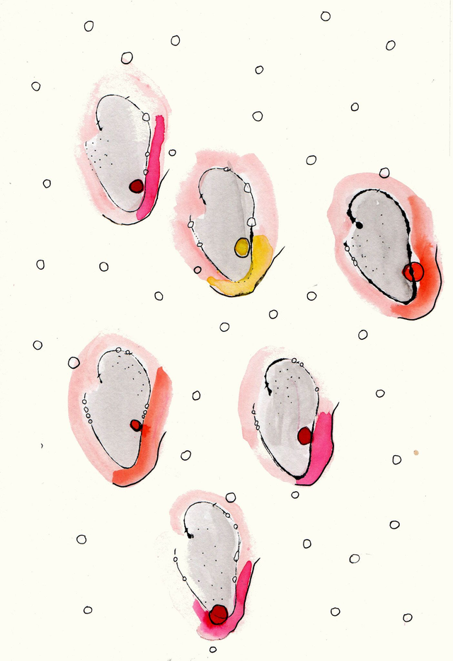 Encre originale et unique pour le livre « Les comptines du week-end ». Titre : Des cœurs qui se percutent